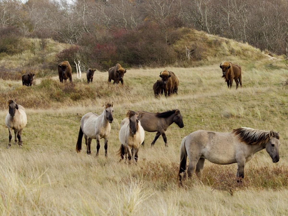 Het is een onvergetelijke ervaring om een wisent een zandbad te zien nemen of te zien zogen. In Nationaal Park Zuid-Kennemerland en het Noordhollands Duinreservaat kun je dit met een beetje geluk meemaken. Hier lopen immers verschillende soorten grote grazers. Maar wat kun je het beste doen om deze dieren niet in hun natuurlijke gedrag te storen? PWN-boswachters Lydia en Simone leggen het uit.