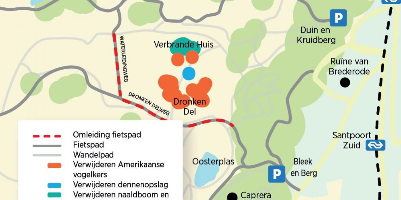 Om de werkzaamheden veilig uit te kunnen voeren worden fietsers tijdelijk omgeleid voor de duur van enkele weken. De omleiding staat duidelijk aangegeven in het duingebied. De omleiding geldt niet voor wandelaars.