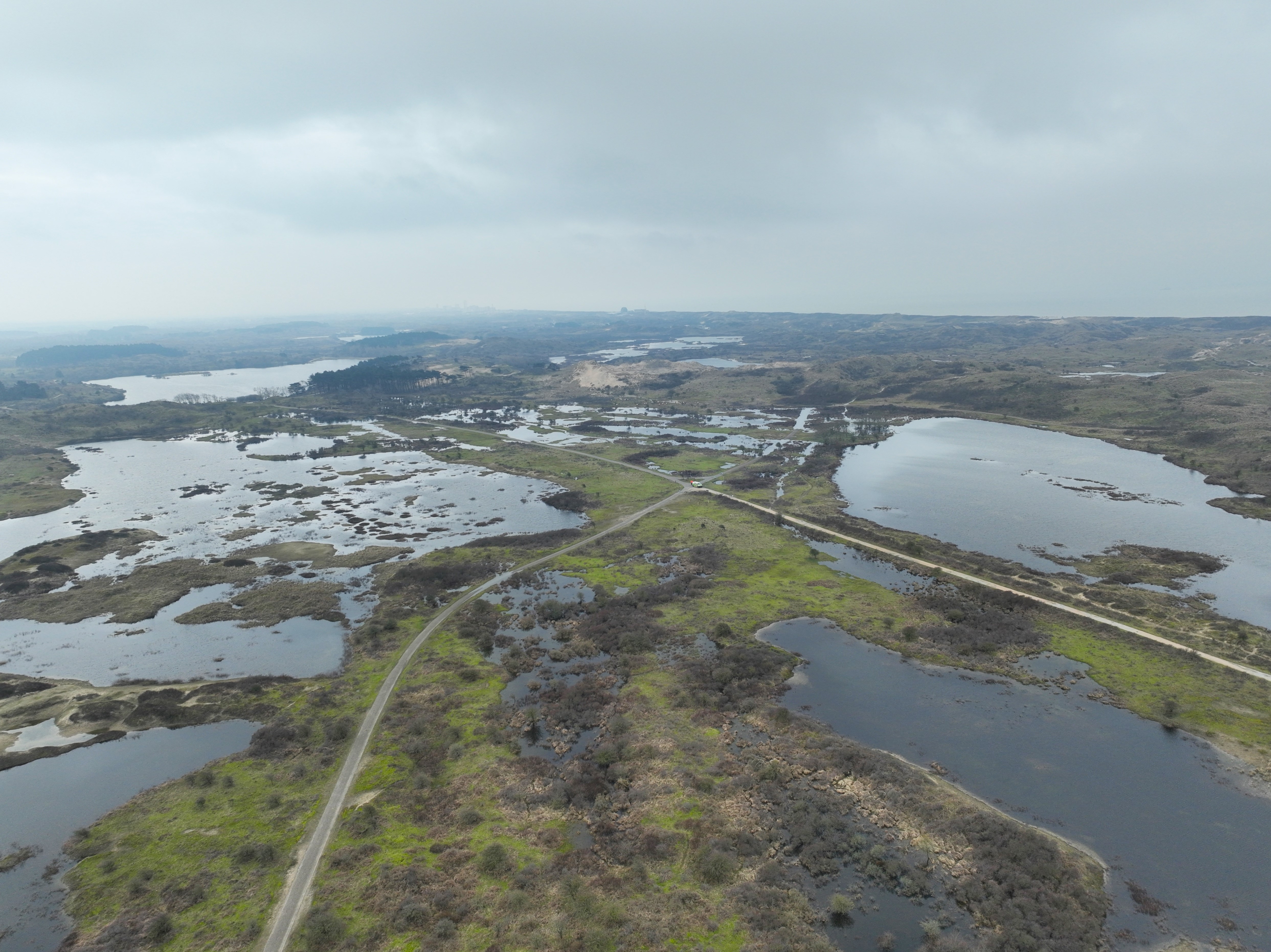 Door de extreme hoeveelheid neerslag van het afgelopen jaar stonden diverse wandel- en fietspaden in het Nationaal Park Zuid-Kennemerland lang onder water. Op sommige plekken kon je door het hoge water niet meer veilig fietsen. Bijvoorbeeld op een aantal lage plekken op het fietspad vanaf de Oosterplas naar Parnassia. Het grondwater staat nu, aan het begin van het natte seizoen, nog steeds hoog. De verwachting is dat deze winter opnieuw paden flink onder water komen te staan. Afhankelijk van de hoeveelheid regen en stijging van het grondwater wordt in het voorjaar besloten of de tijdelijke brug opnieuw nodig is tijdens het drukke toeristenseizoen. Gebiedsbeheerder PWN zorgt dat bezoekers in de duinen en op de website duidelijke informatie kunnen vinden over de bereikbaarheid en omleidingsroutes.