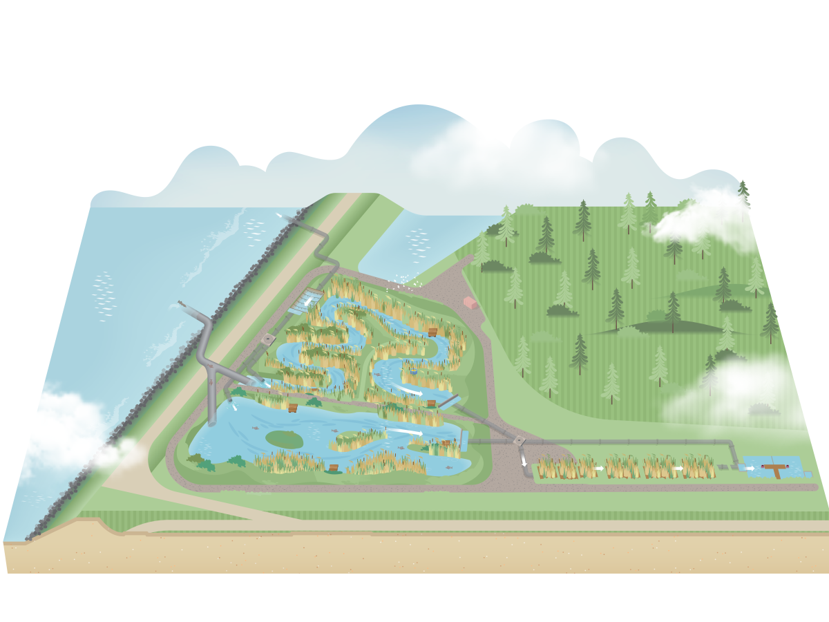 Met de resultaten willen we uiteindelijk een klimaatbuffer bouwen in het IJsselmeer. Dat bestaat uit grote watervoorraadbekkens met daaromheen een zuiverend natuurgebied. Het water uit de bekkens zuiveren we met technologie verder na.